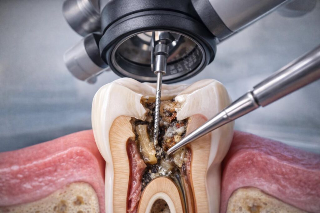 إعادة علاج العصب هي إجراء طبي متقدم يُجرى عندما لا يحقق علاج قناة الجذر السابق النتيجة المرجوة، أو عند عودة الألم والالتهاب بسبب تعقيد القنوات أو بقاء بكتيريا داخل الجذر.