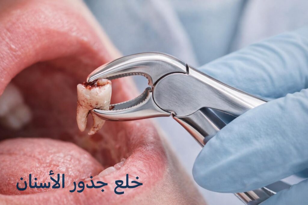 خلع جذور الأسنان يُجرى عندما يتبقّى جزء من الجذر داخل اللثة نتيجة كسر السن أو تلفه الشديد، مما قد يسبب التهابات أو آلامًا متكرّرة إذا لم يُعالج.